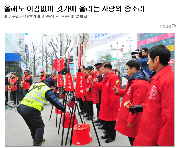올해도 어김없이 소외된 이웃들을 위해 거리에서 구세군자선냄비가 울린다.